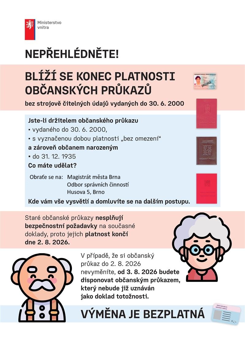 Blíží se konec platnosti občanských průkazů bez strojově čitelných údajů, vydaných do 30. 6. 2000.