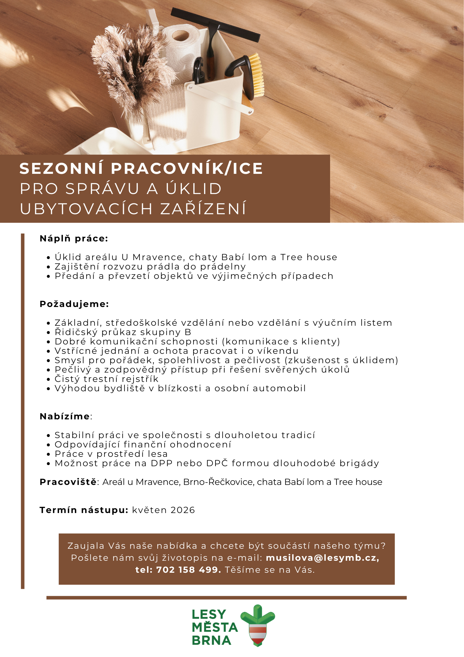 Kontaktní e-mail: musetova@lesymestabrna.cz, tel.: 725 709 459.